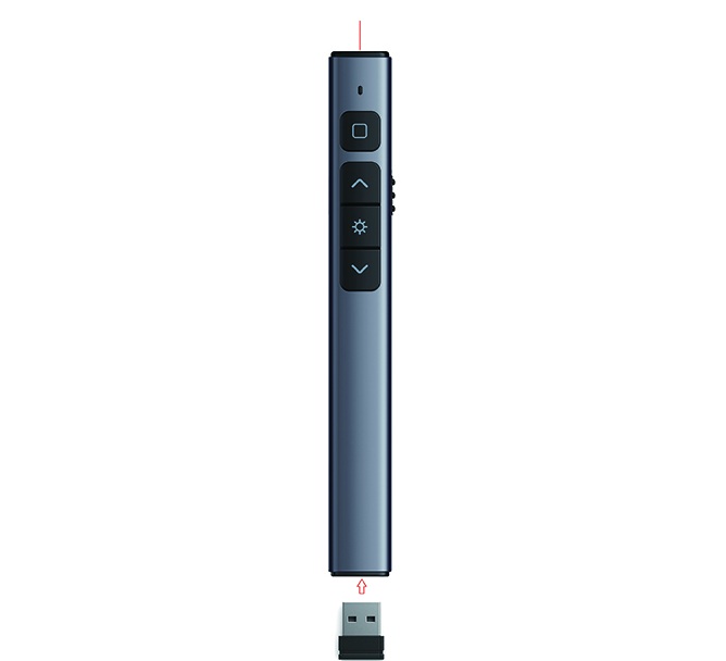 הפרזנטור מתחבר למחשב באמצעות מקלט USB זעיר בטכנולוגיית 2.4GHz ומאפשר שליטה יציבה למרחק של עד כ-50 מטר.